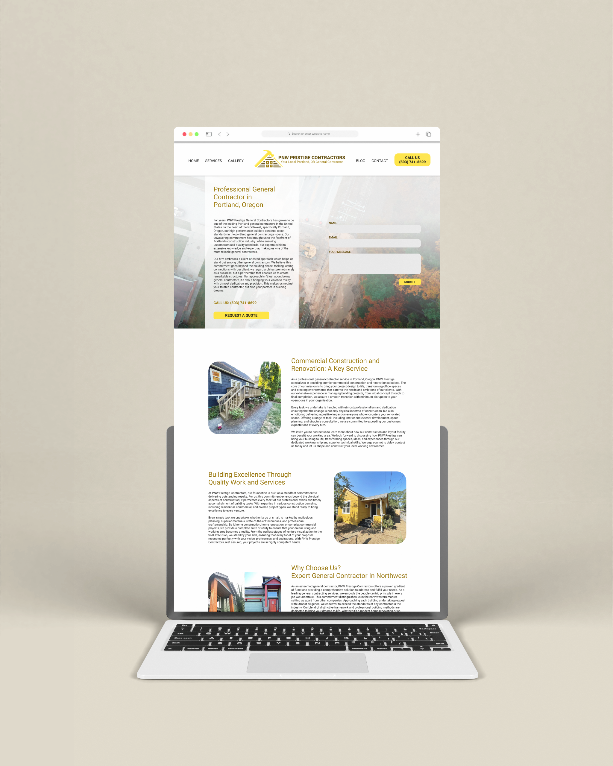 PNW Prestige Contractors is a conceptual construction and contracting brand inspired by the rugged beauty and reliability of the Pacific Northwest. The company aims to blend craftsmanship with professionalism—serving residential and commercial clients with integrity and precision.
